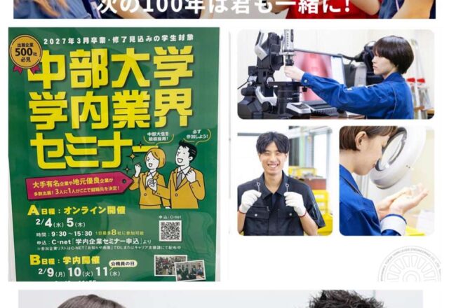 2026年2月9日(月)中部大学学内業界セミナーに湯浅糸道工業が参加いたします。 皆さん、こんにちは。湯浅糸道工業の採用担当者です。 2026年2月9日(月)、中部大学にて開催される「学内業界セミナー」に、今年も湯浅糸道工業が参加いた…